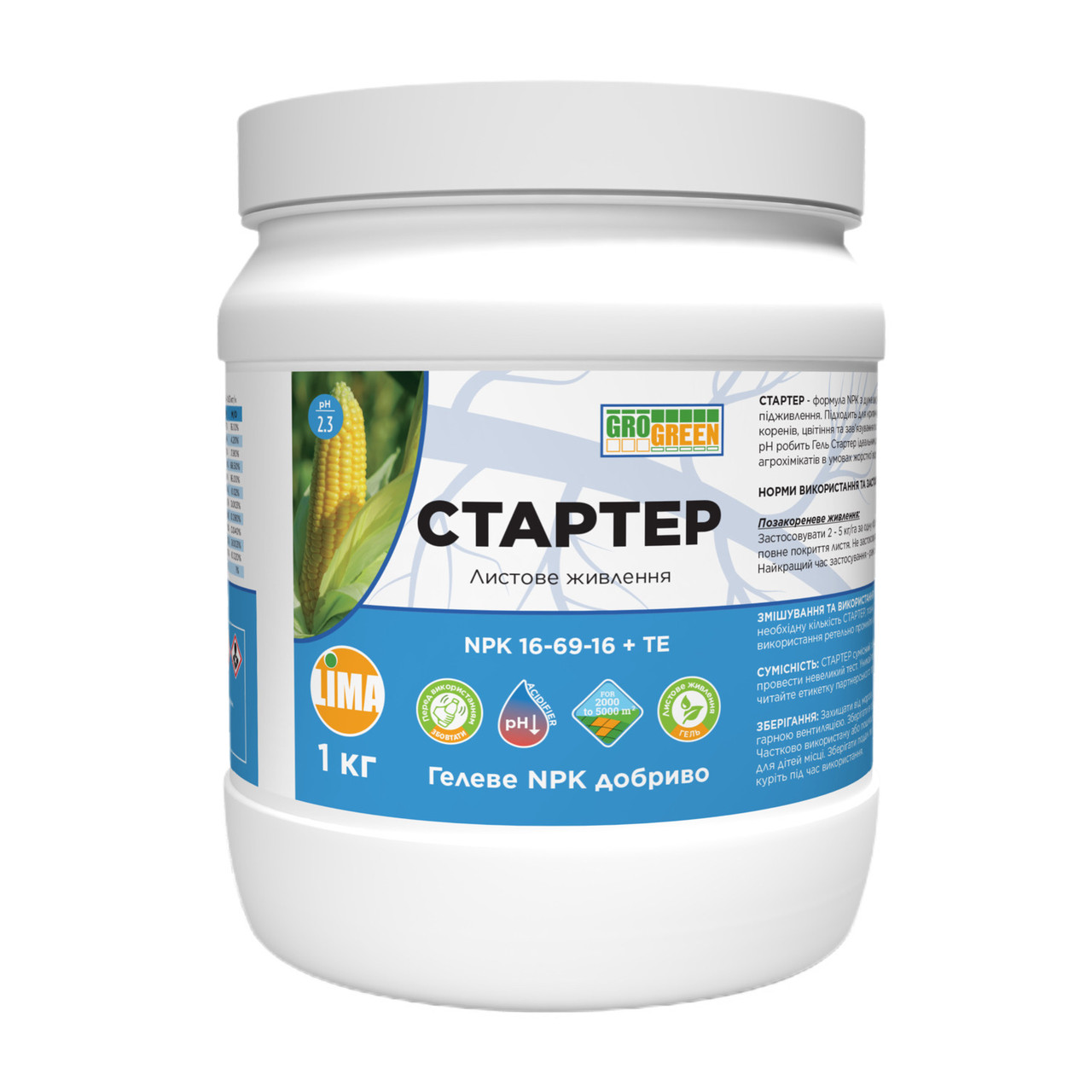 GEL STARTER NPK 16-69-16 + TE - водорозчинне NPK добриво з мікроелементами, даний препарат є добривом спеціально розробленим для збалансованого постачання кореневої системи і листового апппарата, що дозволяє збільшувати врожай і його якість.